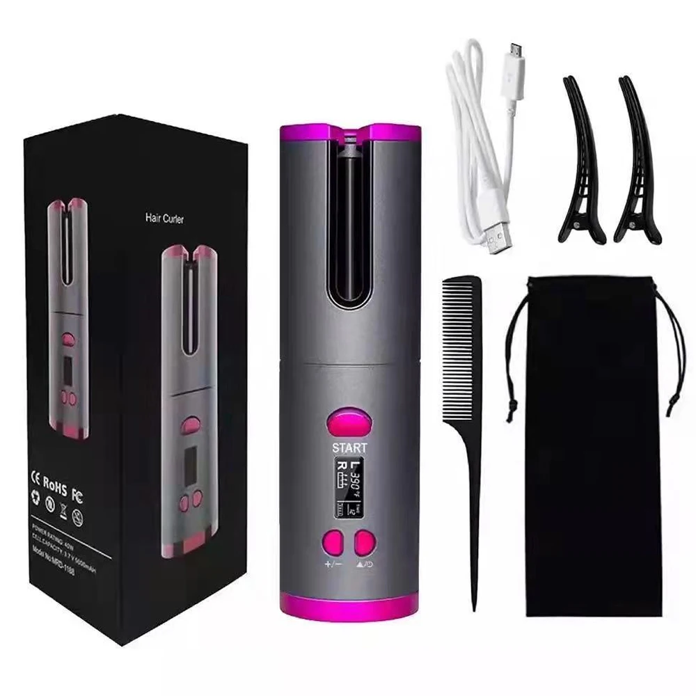 Modelador de cabelo sem fio, ferro de ondulação automático com 6 configurações ajustáveis da indicação da temperatura do lcd & do temporizador, varinha de ondulação recarregável sem fio portátil de usb para o curso, casa