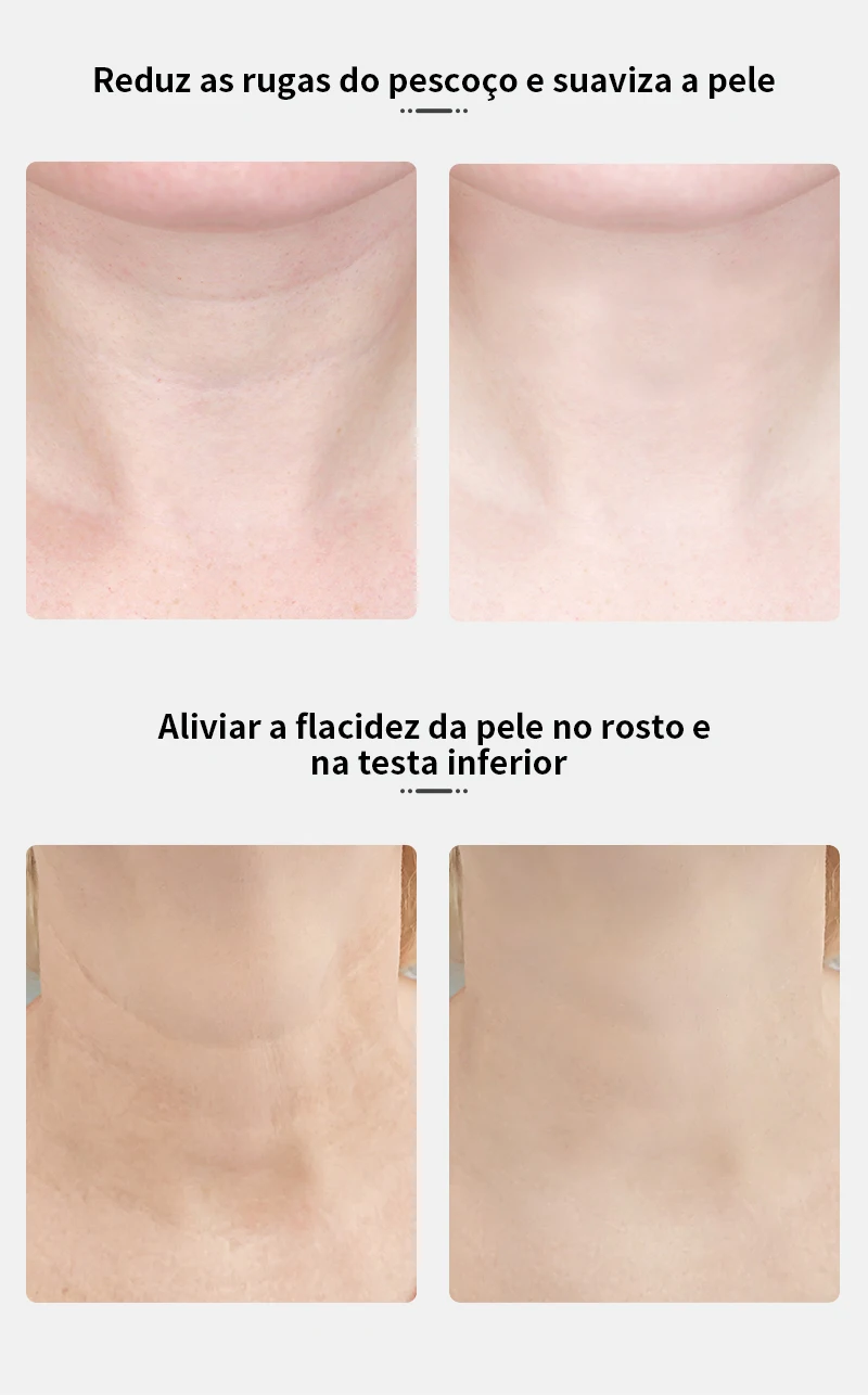 A medida que envelhecemos, a pele delicada ao redor do pescoço pode começar a ceder e parecer enrugada, mas o Derma-Neck localizada nas áreas flácidas e as tonifica, proporcionando uma pele mais macia, lisa e firme.