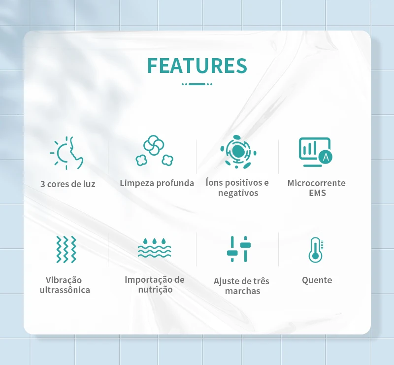 Cabeça de massagem 45 ° sentido de temperatura e massagem de vibração sônica podem promover a circulação sanguínea e retardar o envelhecimento das células epidérmicas. Ele reduzirá a aparência das linhas do pescoço, reduzirá o inchaço, restaurará a elasticidade das células.